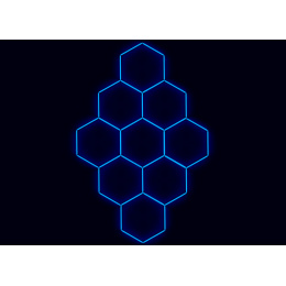Kompletní LED hexagonové svítidlo modré, rozměr: 9 elementů 246 x 386 cm