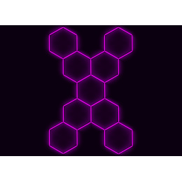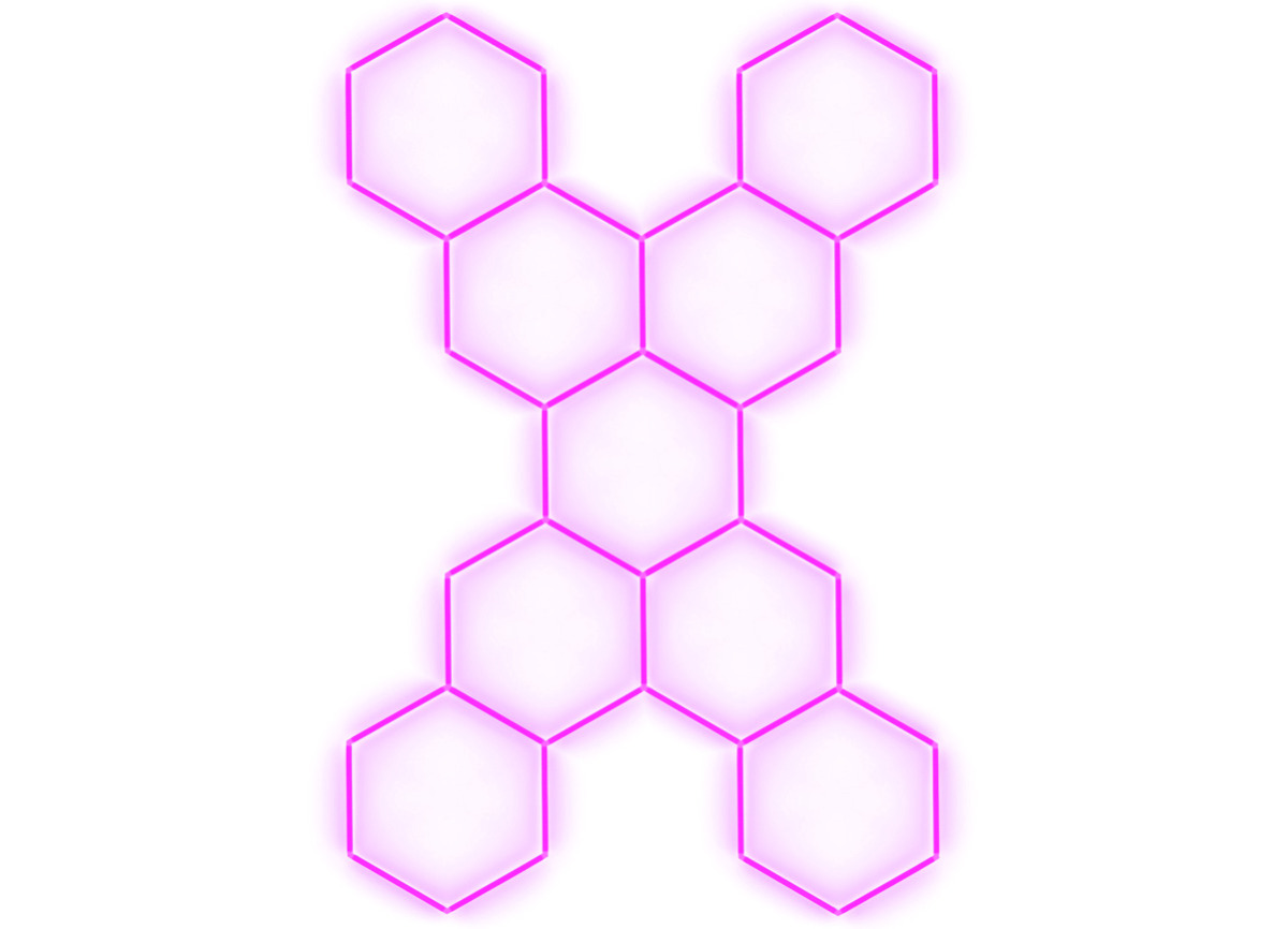Kompletní LED hexagonové svítidlo růžové, rozměr: 9 elementů 246 x 386 cm tvar X