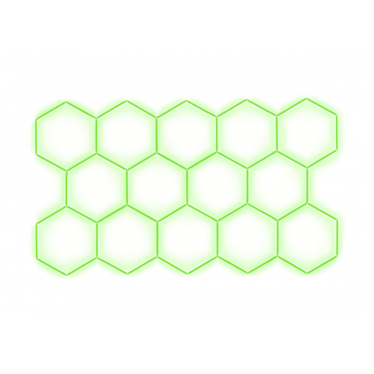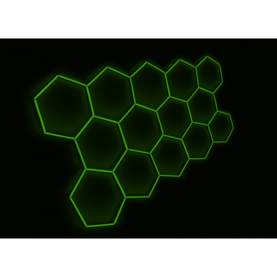 Kompletní LED hexagonové svítidlo zelené, rozměr: 14 elementů 420 x 238 cm