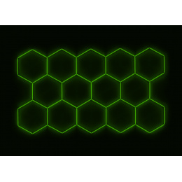 Kompletní LED hexagonové svítidlo zelené, rozměr: 14 elementů 420 x 238 cm