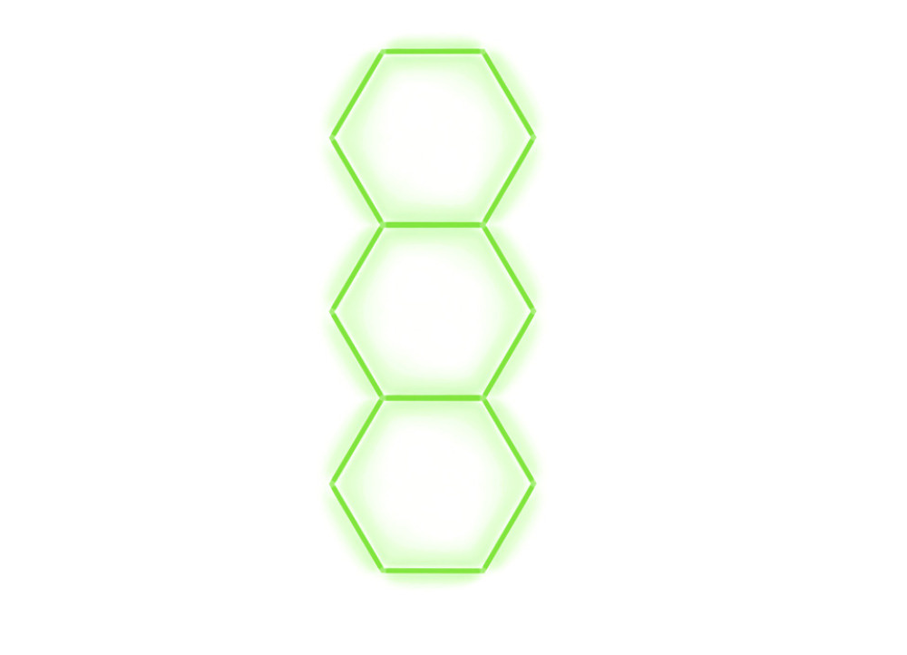 Kompletní LED hexagonové svítidlo zelené, rozměr: 3 elementy 97 x 246 cm
