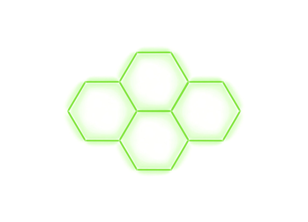 Kompletní LED hexagonové svítidlo zelené, rozměr: 4 elementy 241 x 168 cm