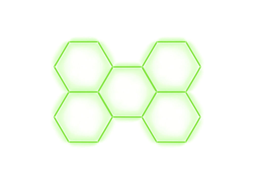 Kompletní LED hexagonové svítidlo zelené, rozměr: 5 elementů 238 x 168 cm