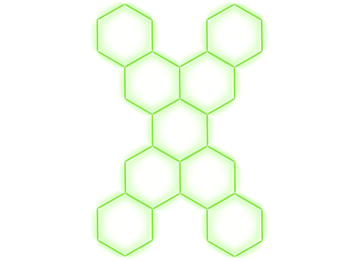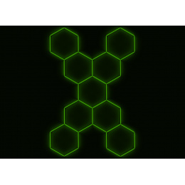 Kompletní LED hexagonové svítidlo zelené, rozměr: 9 elementů 246 x 386 cm tvar X
