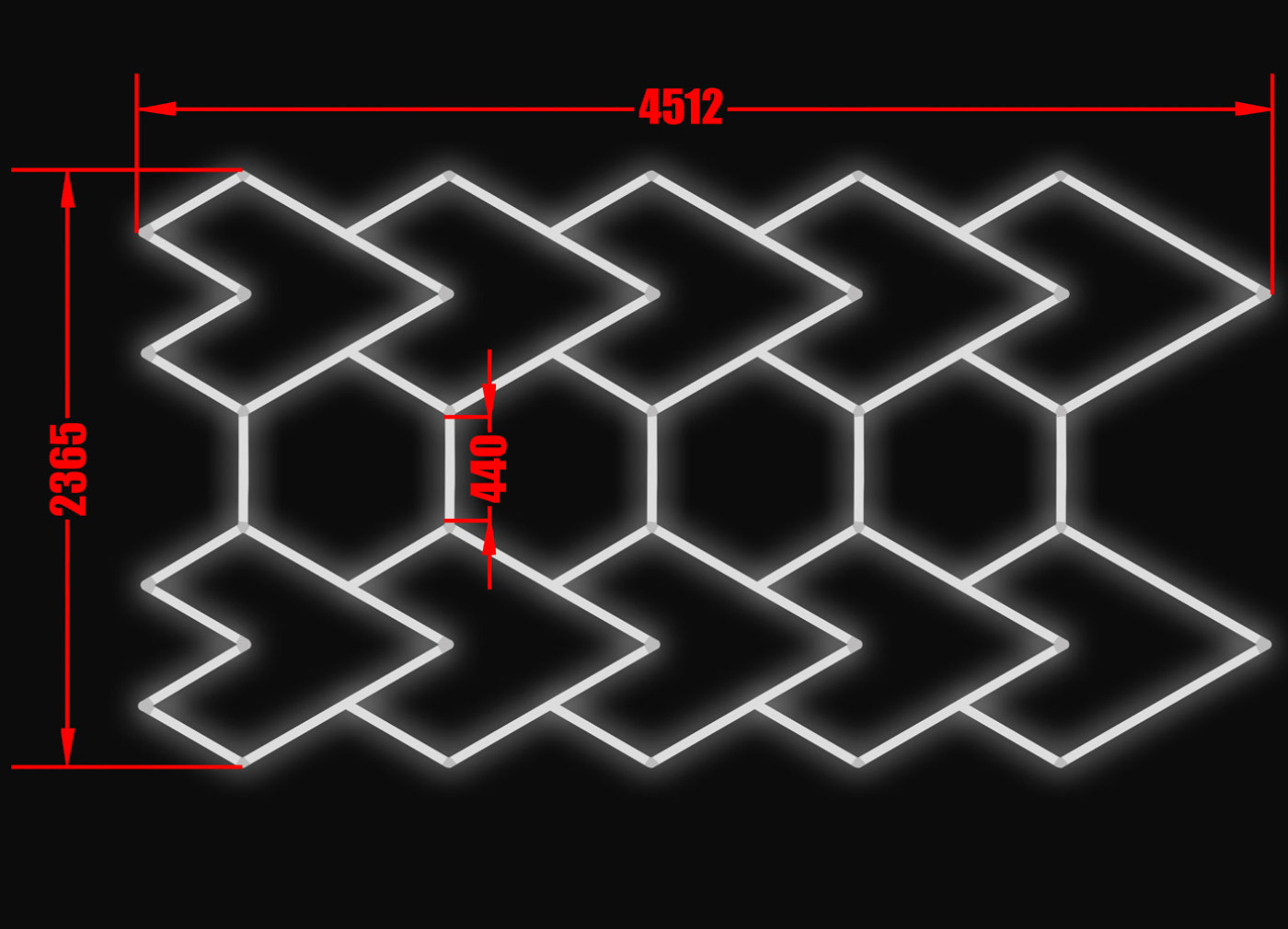 Kompletní LED svítidlo, rozměr: 236,5 x 451,2 cm, teplota světla: bílá 6500 K