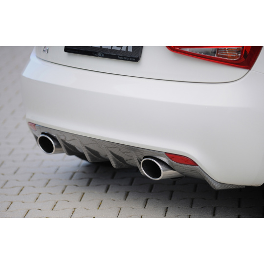 Audi A1 (8X), 1.2l 63kW 1.4l 90/103/132kW, pro Rieger vložku zadního nárazníku, 1x140x90mm, s vyraženým logem, nerezová ocel