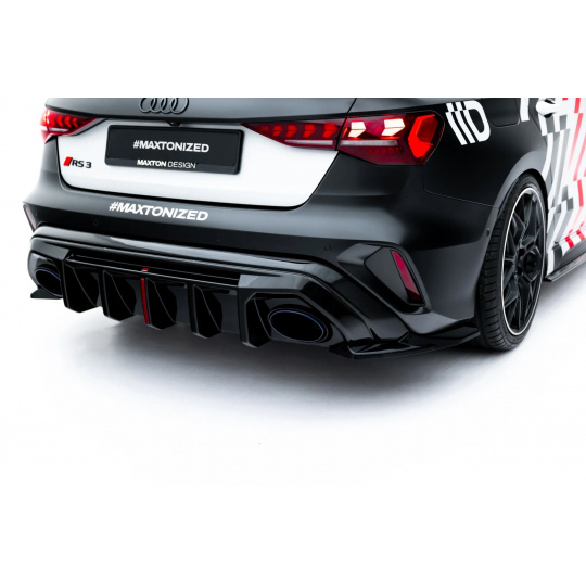 Maxton Design boční difuzory pod zadní nárazník ver.1 pro Audi RS3 8Y Facelift, černý lesklý plast ABS, Sedan