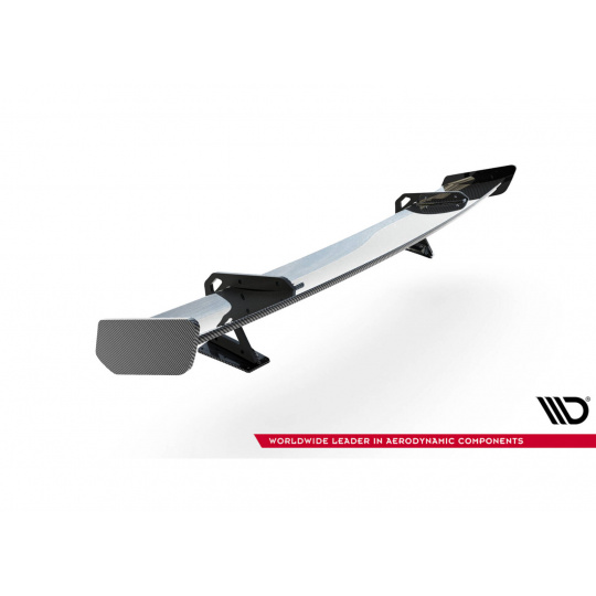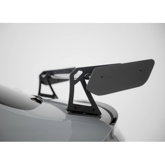 Výrazné křídlo na víko kufru upravuje proudění vzduchu kolem zadní části vozu a podstatně zvýrazňuje sportovní charakter vozu. Součástí balení je montážní materiál a stojny vyrobené z černě lakovaného hliníku.