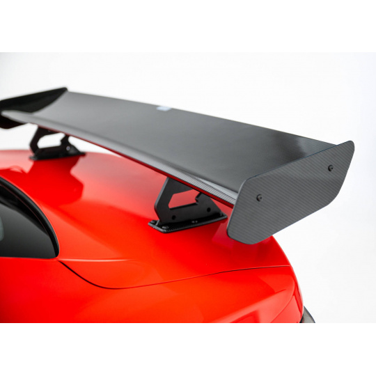 Výrazné křídlo na víko kufru upravuje proudění vzduchu kolem zadní části vozu a podstatně zvýrazňuje sportovní charakter vozu. Součástí balení je montážní materiál a stojny vyrobené z černě lakovaného hliníku.