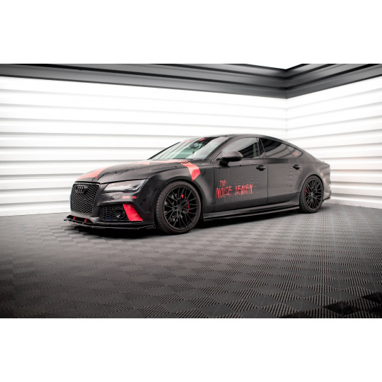 Maxton Design difuzory pod boční prahy pro Audi A7 C7, černý lesklý plast ABS, S-Line
