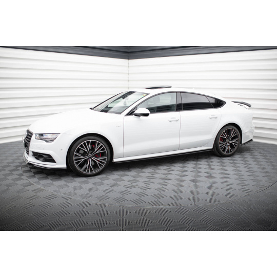 Maxton Design difuzory pod boční prahy pro Audi A7, S7 C7 FL Facelift, černý lesklý plast ABS