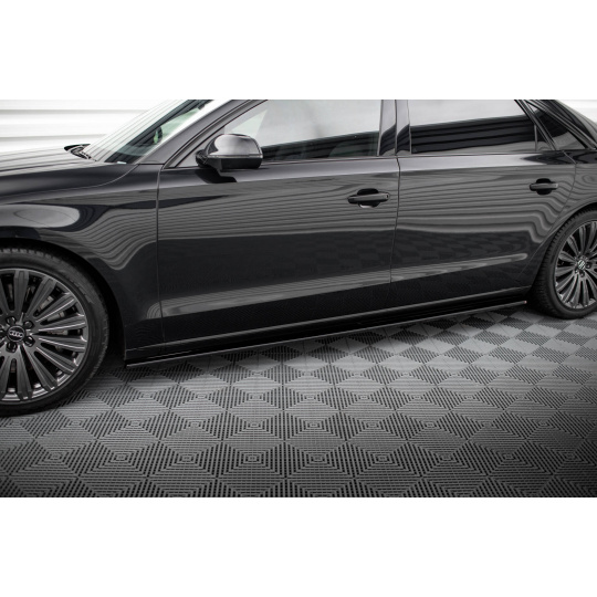Maxton Design difuzory pod boční prahy pro Audi A8 D4, černý lesklý plast ABS, Long