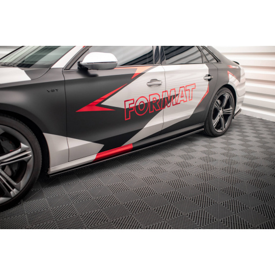 Maxton Design difuzory pod boční prahy pro Audi S8 D4, černý lesklý plast ABS