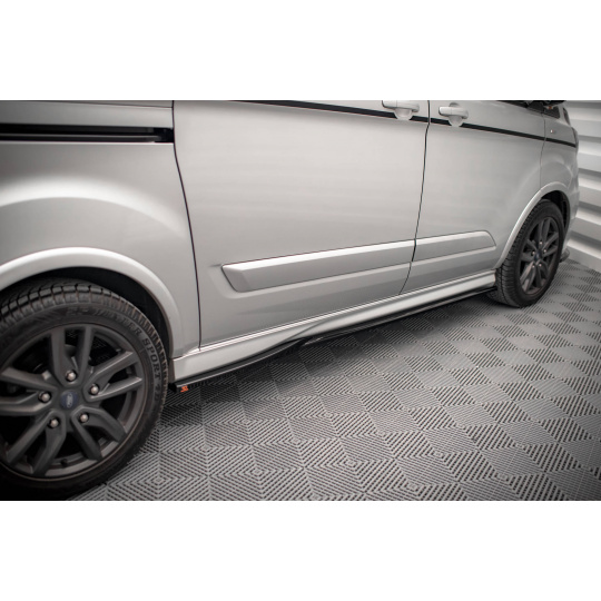 Maxton Design difuzory pod boční prahy pro Ford Transit Custom Mk1 Facelift ST-Line, černý lesklý plast ABS