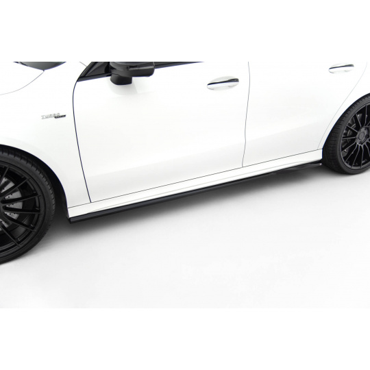 Maxton Design difuzory pod boční prahy pro Mercedes CLA C118/AMG 35 Facelift, C118/AMG 45 Facelift, černý lesklý plast ABS, Coupe / Shooting Brake