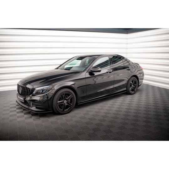 Maxton Design difuzory pod boční prahy pro Mercedes třída C W205 Facelift/43 AMG Sedan, W205 Facelift/AMG-Line/Sedan, černý lesklý plast ABS