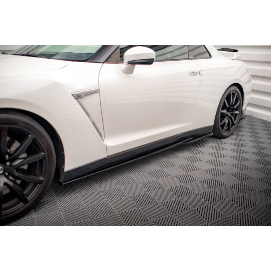 Maxton Design difuzory pod boční prahy pro Nissan GT-R R35 Facelift, černý lesklý plast ABS, r.v. 2011-2016