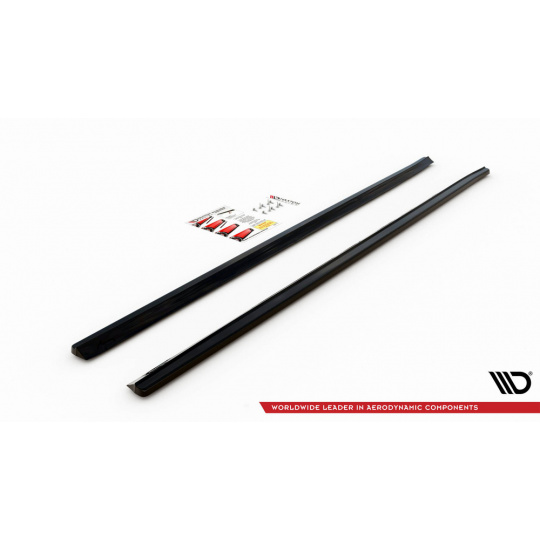 Maxton Design difuzory pod boční prahy pro Škoda Octavia RS Mk2, Mk2 Facelift, černý lesklý plast ABS