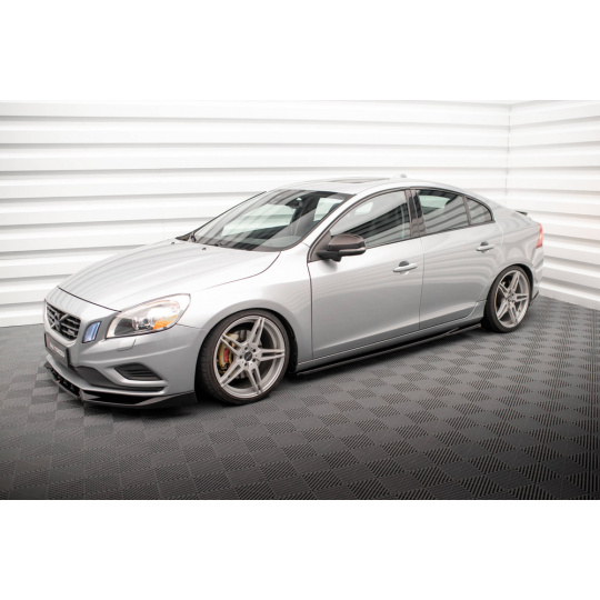 Maxton Design difuzory pod boční prahy pro Volvo S60 Mk2, Mk2 Facelift, černý lesklý plast ABS, R-Design
