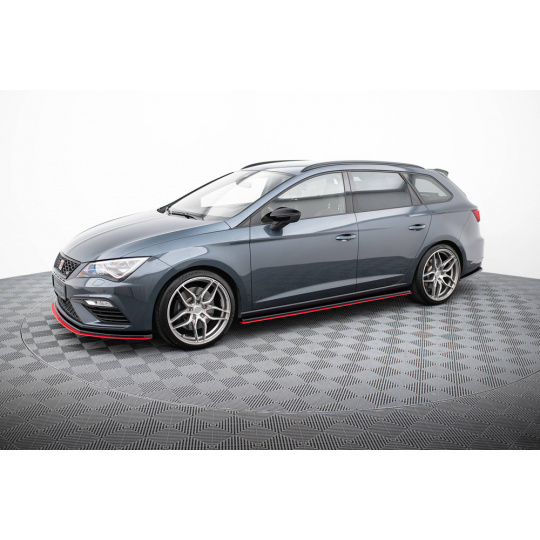 Maxton Design difuzory pod boční prahy ver.3 pro Seat Leon Cupra Mk3 Facelift, černý lesklý plast ABS, s červenou linkou