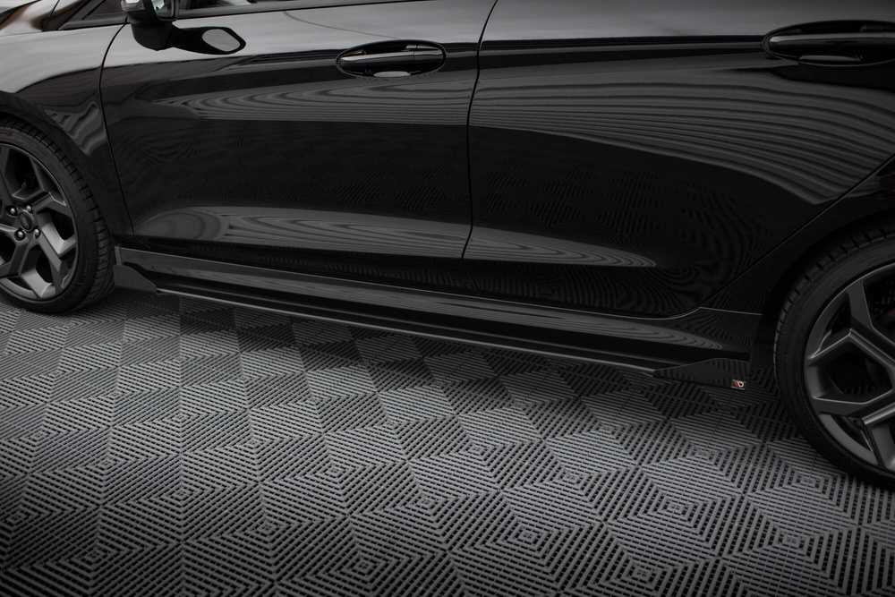 Maxton Design "Racing durability" difuzory pod boční prahy s křidélky pro Ford Fiesta, Fiesta ST Mk8, plast ABS bez povrchové úpravy, s červenou linkou