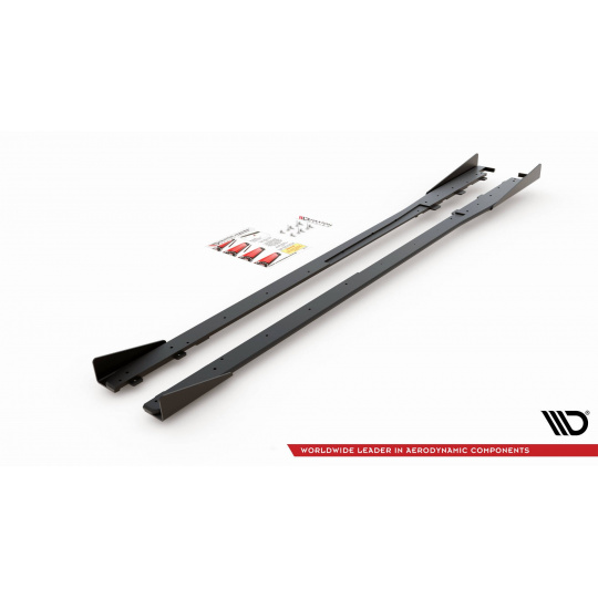 Maxton Design "Racing durability" difuzory pod boční prahy s křidélky pro Toyota GR Yaris Mk3, plast ABS bez povrchové úpravy, s červenou linkou