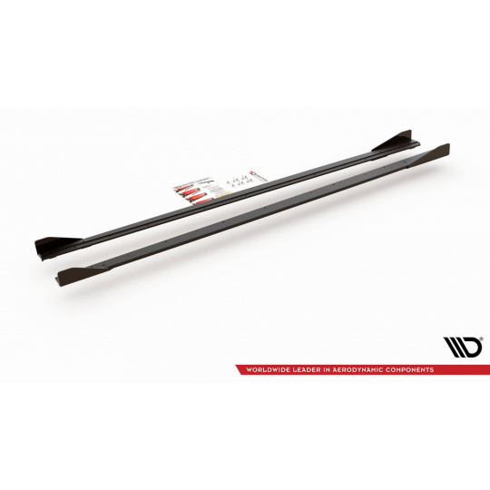 Maxton Design "Racing durability" difuzory pod boční prahy s křidélky pro Volkswagen Polo GTI Mk6, plast ABS bez povrchové úpravy, s červenou linkou