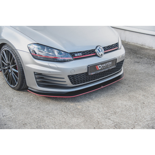 Maxton Design "Racing durability" spoiler pod přední nárazník pro Volkswagen Golf GTI Mk7, plast ABS bez povrchové úpravy, s červenou linkou