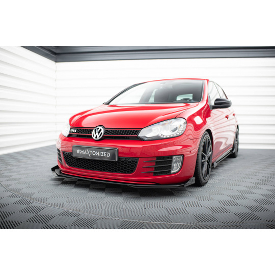 Maxton Design "Racing durability" spoiler pod přední nárazník ver.3 s křidélky pro Volkswagen Golf GTI Mk6, plast ABS bez povrchové úpravy, s červenou linkou