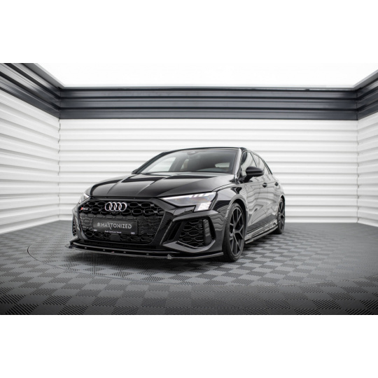 Maxton Design spoiler pod přední nárazník pro Audi RS3 8Y, černý lesklý plast ABS, Sedan/Sportback