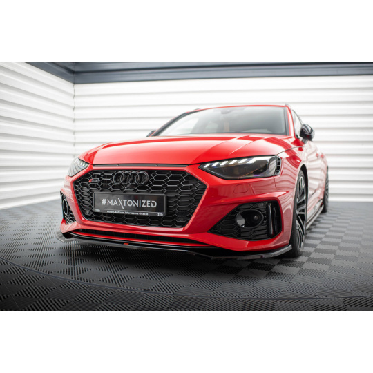 Maxton Design spoiler pod přední nárazník pro Audi RS4 B9 FL, černý lesklý plast ABS