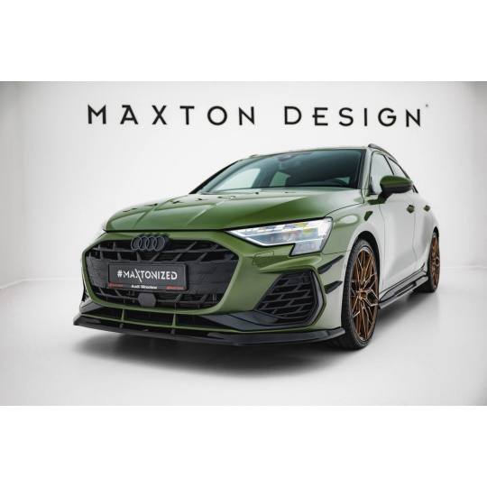 Maxton Design spoiler pod přední nárazník pro Audi S3 8Y Facelift, černý lesklý plast ABS, Sedan / Sportback
