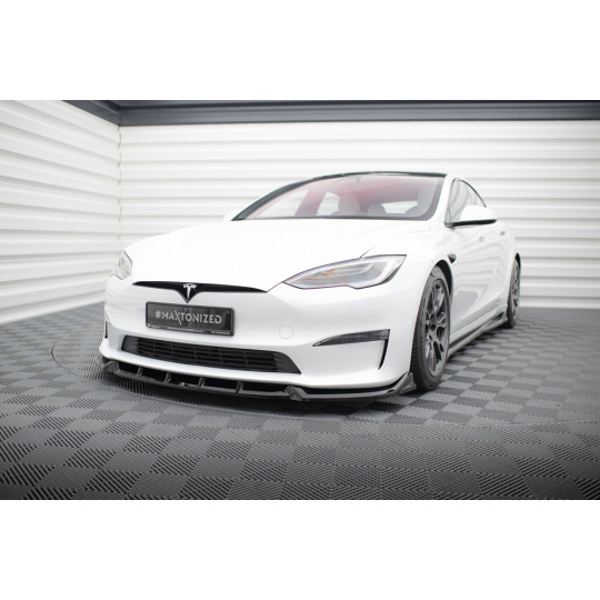 Maxton Design spoiler pod přední nárazník pro Tesla Model S Plaid Mk1 Facelift, černý lesklý plast ABS
