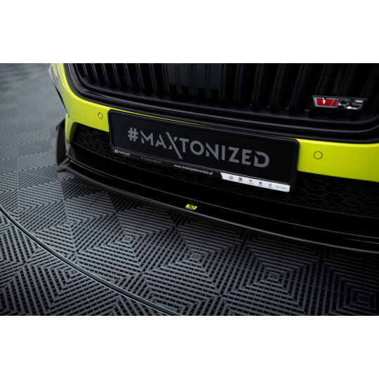 Maxton Design spoiler pod přední nárazník s křidélky ver.2 pro Škoda Octavia RS Mk4, černý lesklý plast ABS