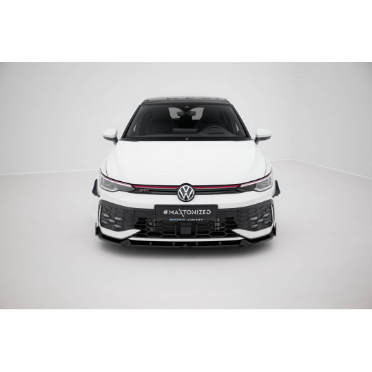 Maxton Design spoiler pod přední nárazník s křidélky ver.2 pro Volkswagen Golf GTE Mk8 Facelift, černý lesklý plast ABS