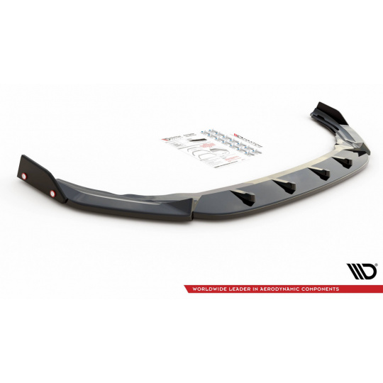 Maxton Design spoiler pod přední nárazník s křidélky ver.2 pro Volkswagen Golf R Mk8, černý lesklý plast ABS