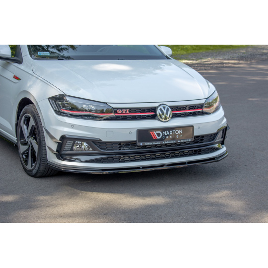 Maxton Design spoiler pod přední nárazník ver.1 pro Volkswagen Polo GTI Mk6, černý lesklý plast ABS