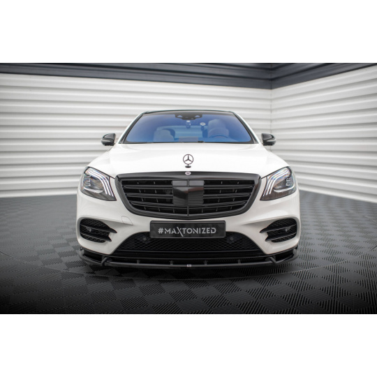 Maxton Design spoiler pod přední nárazník ver.2 pro Mercedes třída S W222 AMG-Line Facelift, černý lesklý plast ABS