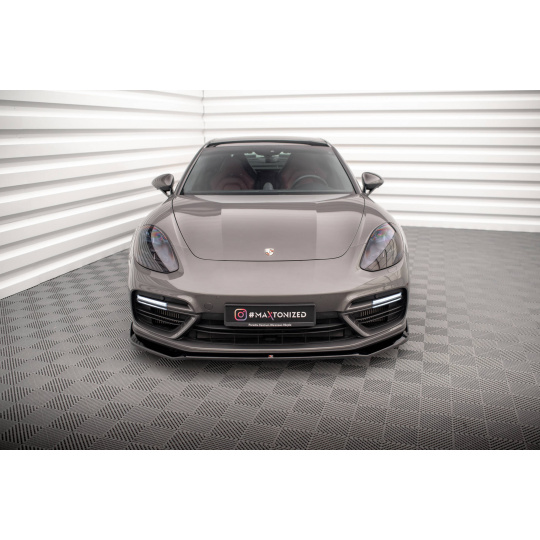 Maxton Design spoiler pod přední nárazník ver.2 pro Porsche Panamera 971 E-Hybrid, černý lesklý plast ABS