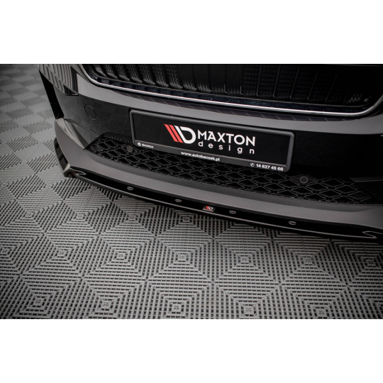 Maxton Design spoiler pod přední nárazník ver.2 pro Škoda Enyaq iV Mk1, černý lesklý plast ABS