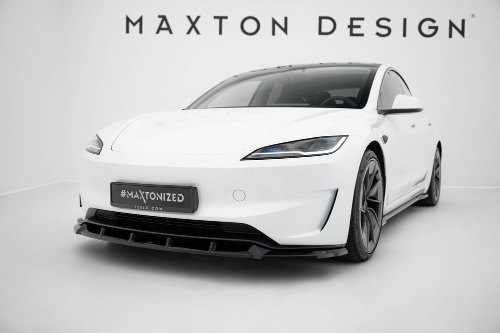 Maxton Design spoiler pod přední nárazník ver.2 pro Tesla Model 3 Mk1 Project Highland Facelift, černý lesklý plast ABS, Performance