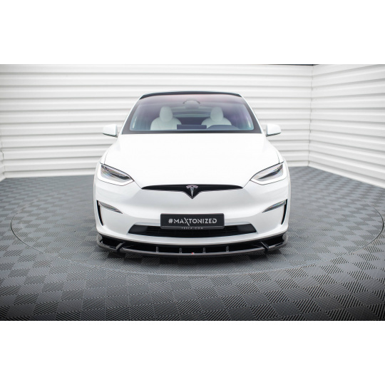 Maxton Design spoiler pod přední nárazník ver.2 pro Tesla Model X Mk1 Facelift, černý lesklý plast ABS