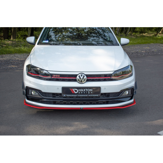 Maxton Design spoiler pod přední nárazník ver.2 pro Volkswagen Polo GTI Mk6, červený lesklý plast ABS
