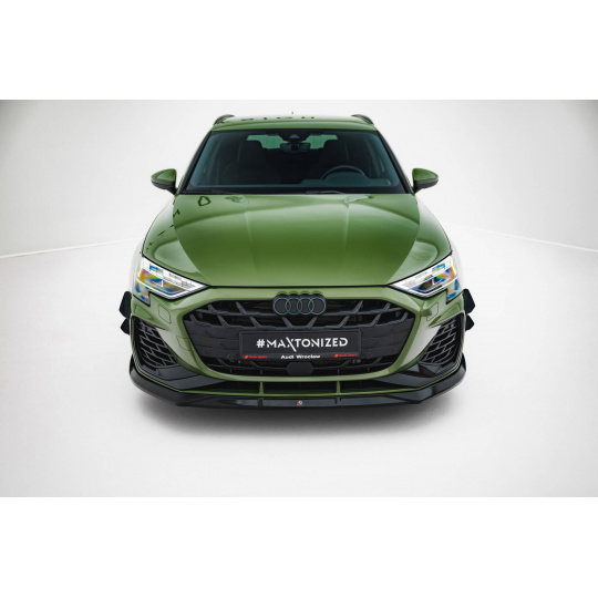 Maxton Design spoiler pod přední nárazník ver.3 pro Audi A3 8Y Facelift, černý lesklý plast ABS, S-Line / S-Line Sedan