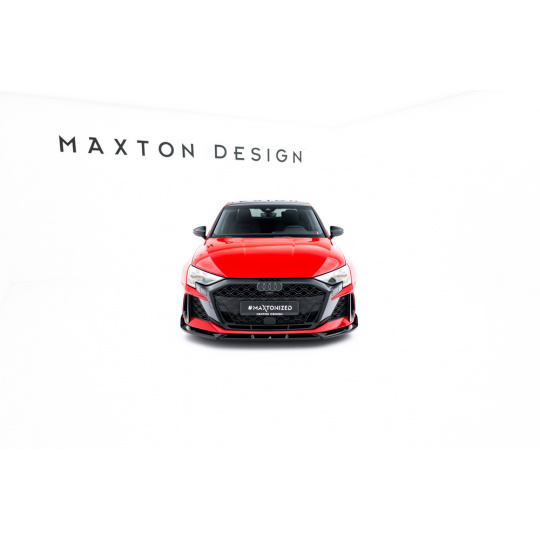 Maxton Design spoiler pod přední nárazník ver.3 pro Audi RS3 8Y Facelift, černý lesklý plast ABS, Sedan