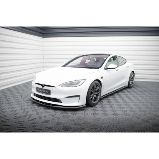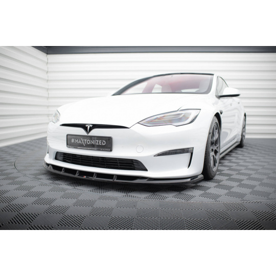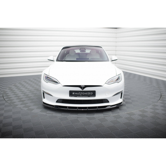 Maxton Design spoiler pod přední nárazník ver.3 pro Tesla Model S Plaid Mk1 Facelift, černý lesklý plast ABS