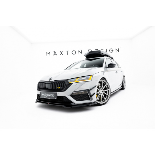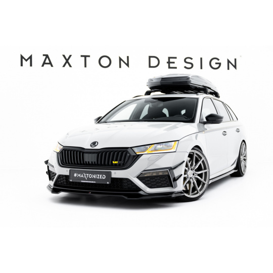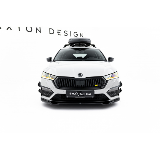 Maxton Design spoiler pod přední nárazník ver.4 pro Škoda Octavia RS Mk4, černý lesklý plast ABS, Liftback / Combi