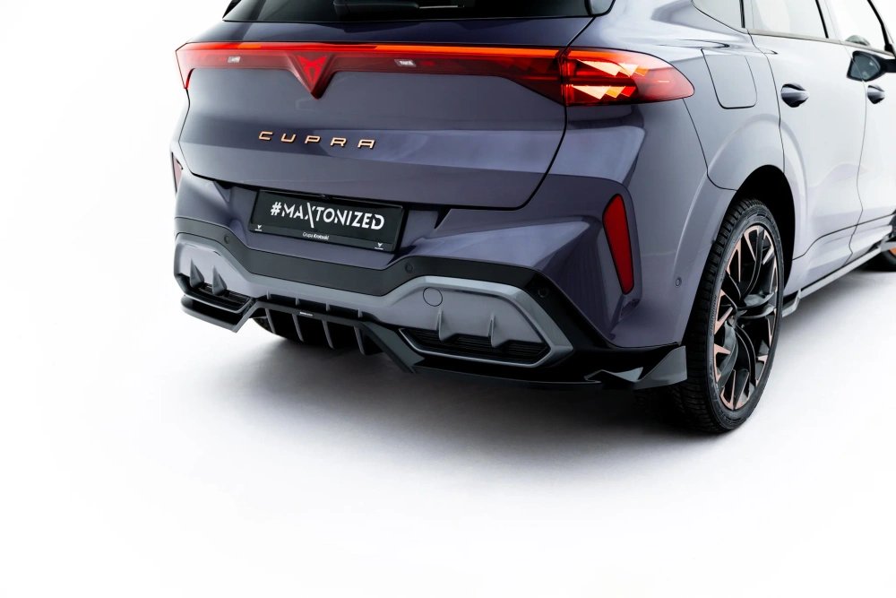 Maxton Design spoiler pod zadní nárazník s žebrováním a křidélkami v.3 pro Cupra Terramar Mk1, černý lesklý plast ABS