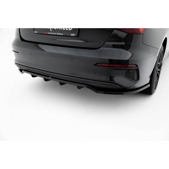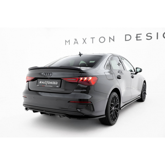 Maxton Design spoiler pod zadní nárazník s žebrováním pro Audi A3 8Y, černý lesklý plast ABS, plast ABS bez povrchové úpravy, Sedan