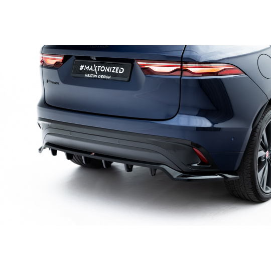 Maxton Design spoiler pod zadní nárazník s žebrováním pro Jaguar F-Pace R-Sport Mk1 Facelift, černý lesklý plast ABS